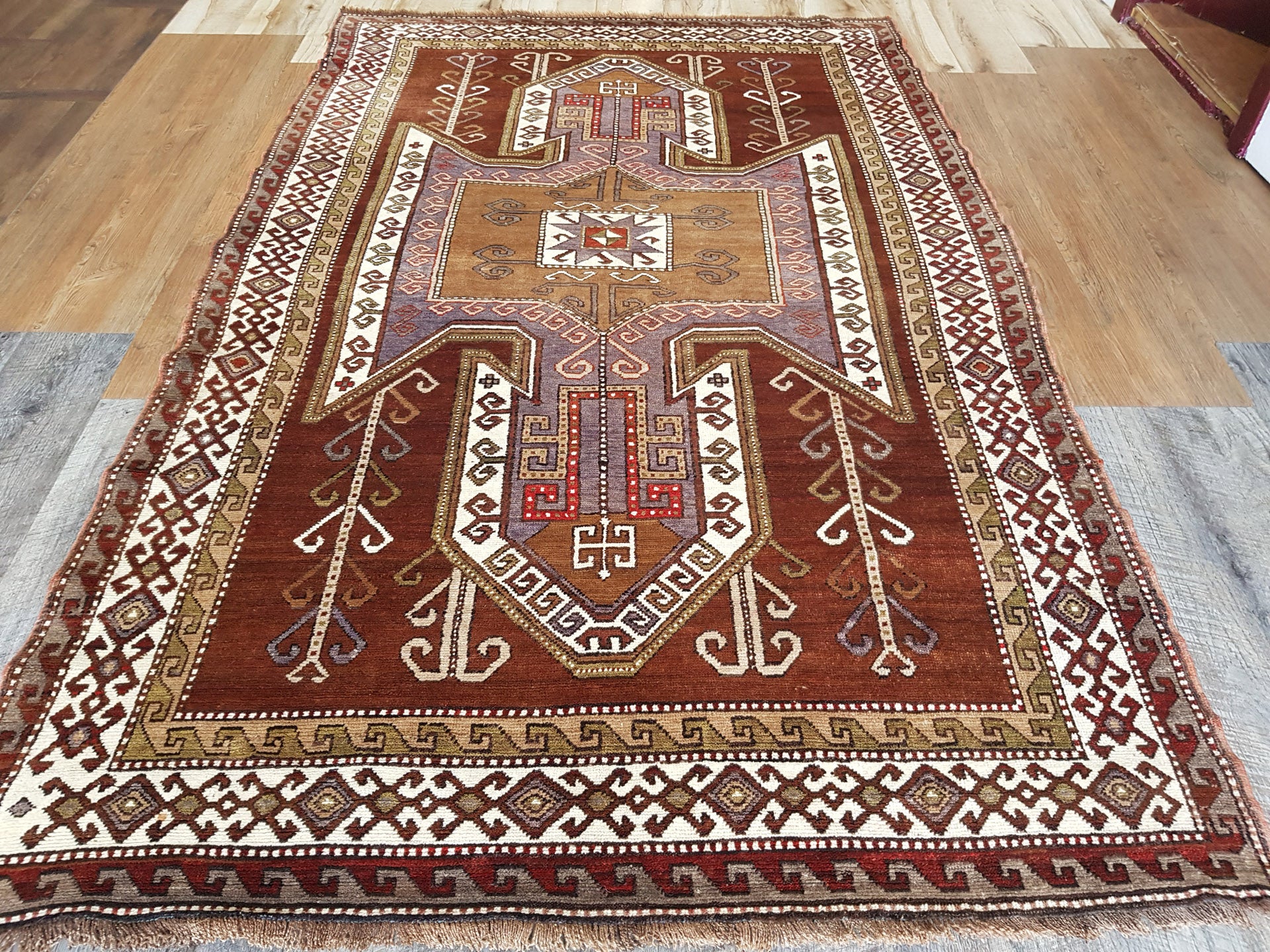 Designs from Taspinar often incorporate geometric medallion patterns arranged in clear, symmetrical compositions. The typical palette favours deep reds and rich blues that create striking yet harmonious visuals without overwhelming a space. Traditional motifs are thoughtfully rendered, showcasing bold forms while maintaining balance and clarity - a reflection of the region’s visual language passed down through generations.