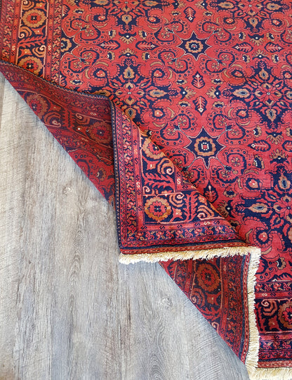 Hand-knotted in Beljik, Afghanistan, this Afghan Beljik rug embodies the precision and richness of tribal weaving. Its all-over floral design features tightly packed boteh motifs, palmettes, and rosettes, arranged in a mirrored, symmetrical layout that speaks to the weaver’s skill.
