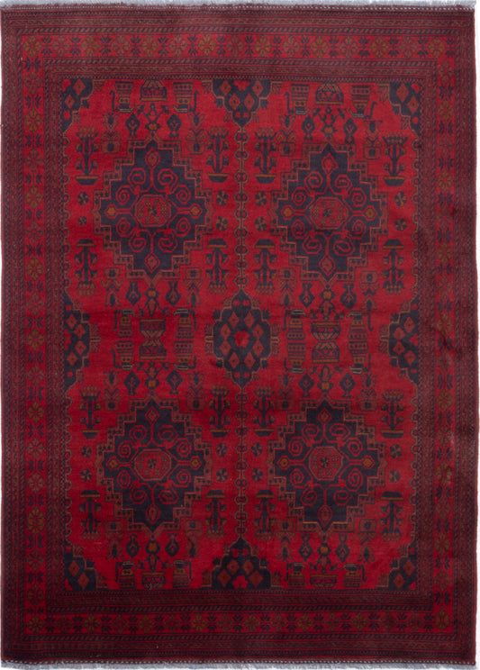 Khal Mohammadi rugs are distinguished by their deep, subtle reds and intricate geometric motifs, reflecting the Turkmen weaving heritage of northern Afghanistan. Typically crafted with hand-spun wool and natural vegetable dyes, these rugs are valued for their fine craftsmanship and understated elegance. Explore the collection to appreciate the signature hallmarks that define the Khal Mohammadi tradition.