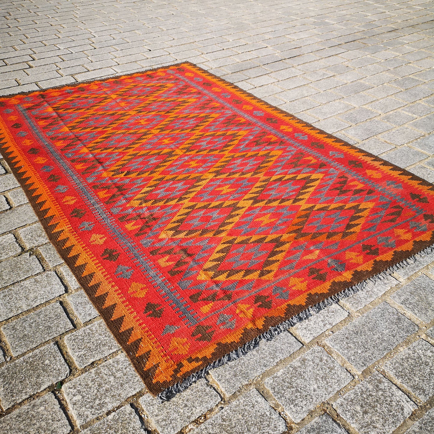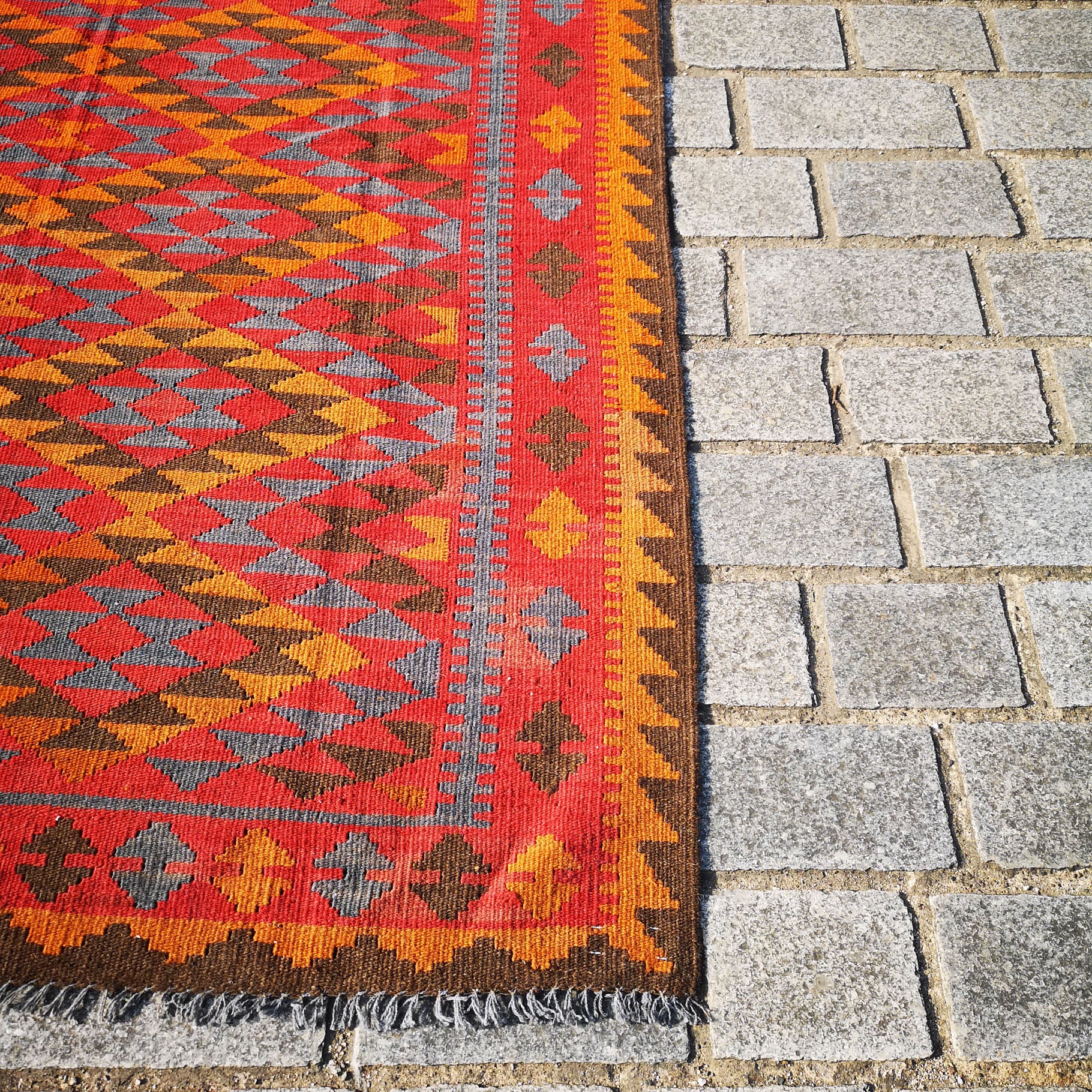 Bring tribal character and graphic impact into your home with this Afghan Kilim. Enquire today to make it yours.