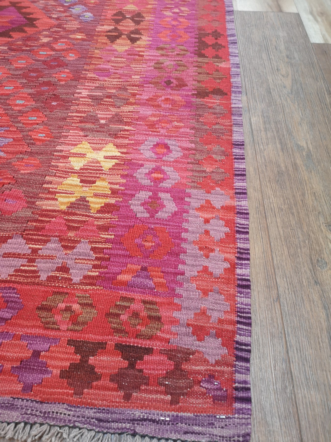 Invite the spirit of Afghan craftsmanship into your home with this timeless Kilim.