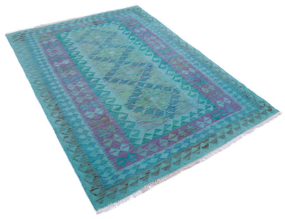 The cool, muted palette of mint green, lilac, and turquoise lends a calming presence, making it ideal for modern interiors seeking quiet character or transitional spaces in need of gentle structure. Its flatwoven construction offers durability without bulk, perfect for layering or high-traffic areas.