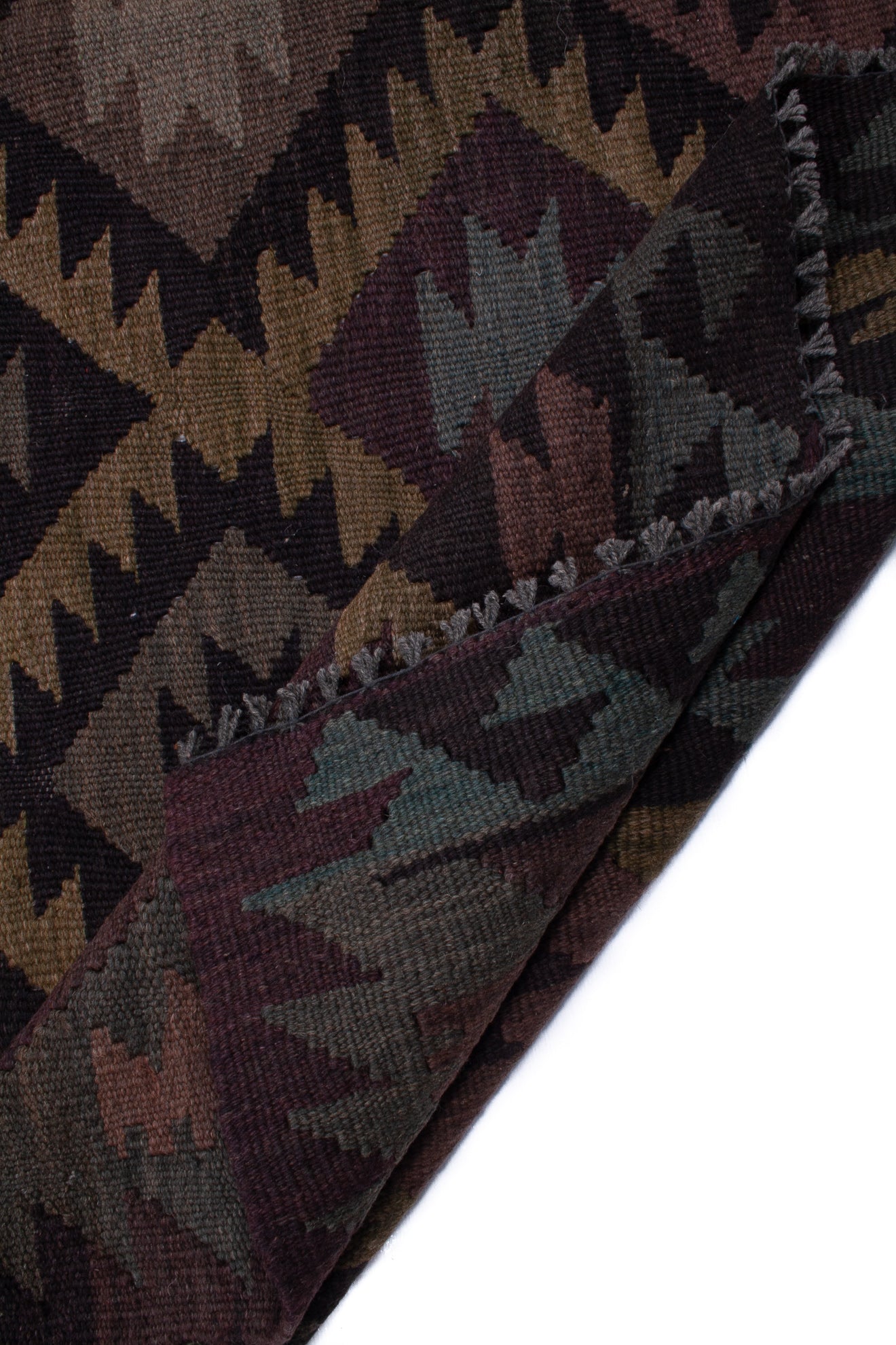 Perfect for grounding open-plan spaces or adding texture to layered interiors, this Kilim brings character without overpowering. Its subtle tones and bold structure make it equally suited to rustic, bohemian, or minimalist settings.
