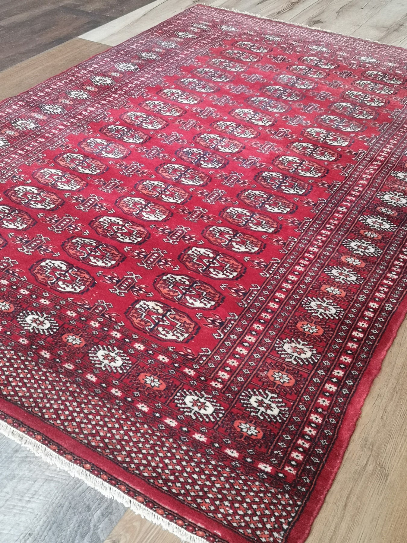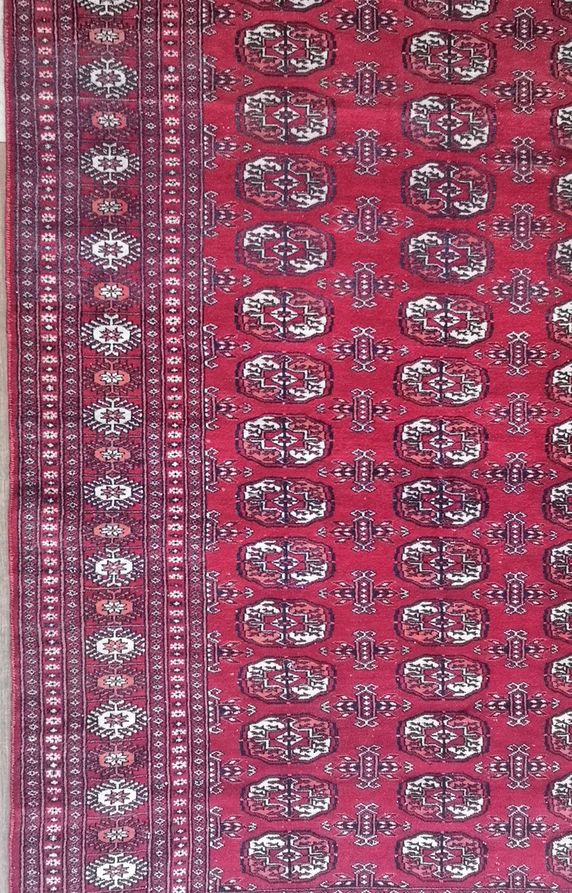 Turkmen rugs reflect the heritage of Central Asian tribal weaving, known for their distinctive gul motifs and carefully structured geometric layouts. This collection presents pieces that speak to the enduring traditions of Turkmen communities, with construction methods rooted in generations of skilled craftsmanship. We invite you to explore the depth of pattern and history within Turkmen rugs, selected for those who appreciate subtle artistry and time-honoured design.
