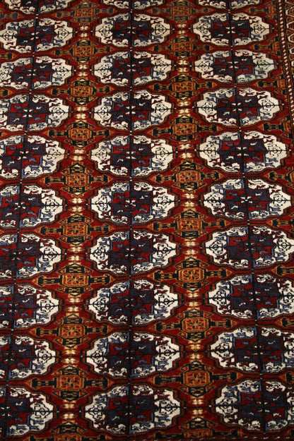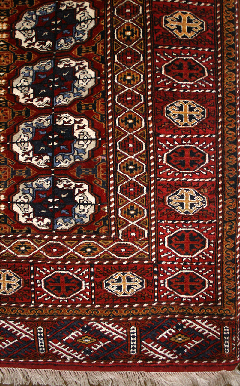 Turkmen rugs reflect the heritage of Central Asian tribal weaving, known for their distinctive gul motifs and carefully structured geometric layouts. This collection presents pieces that speak to the enduring traditions of Turkmen communities, with construction methods rooted in generations of skilled craftsmanship. We invite you to explore the depth of pattern and history within Turkmen rugs, selected for those who appreciate subtle artistry and time-honoured design.