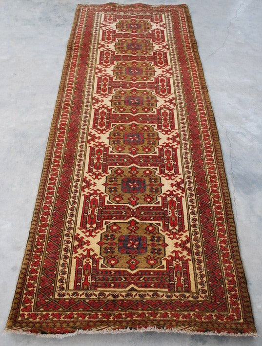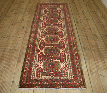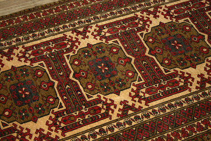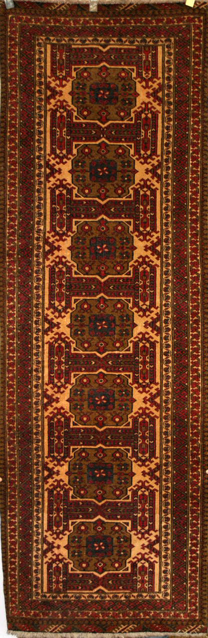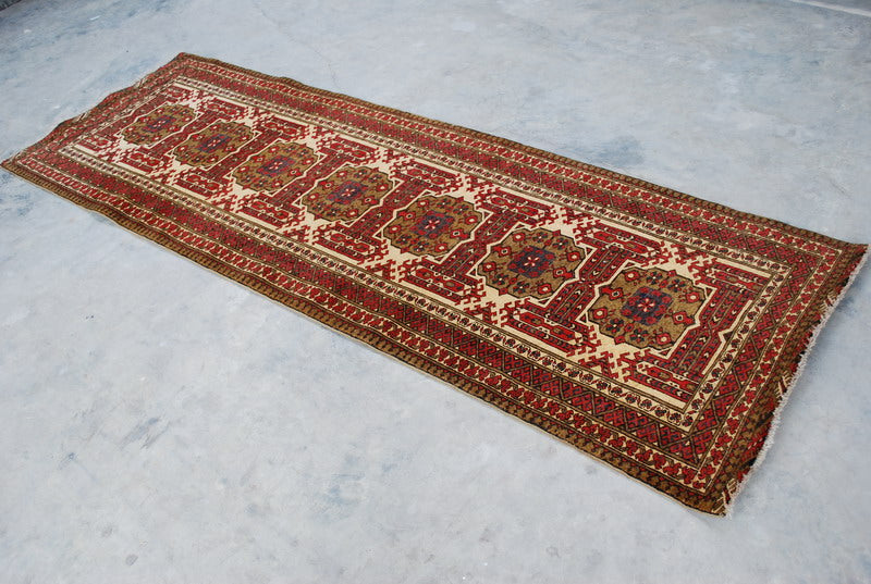 Ideal for enhancing a hallway or adding depth to a cosy seating area, this Afghan Turkmen Runner Rug brings a touch of cultural elegance to any space. Its hand-knotted construction ensures it will be a lasting piece, while its design offers a connection to the storied traditions of the Turkmen artisans. Invite this piece into your home to experience the warmth and authenticity it brings to your living environment.