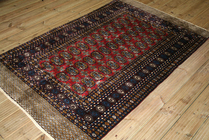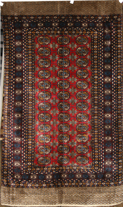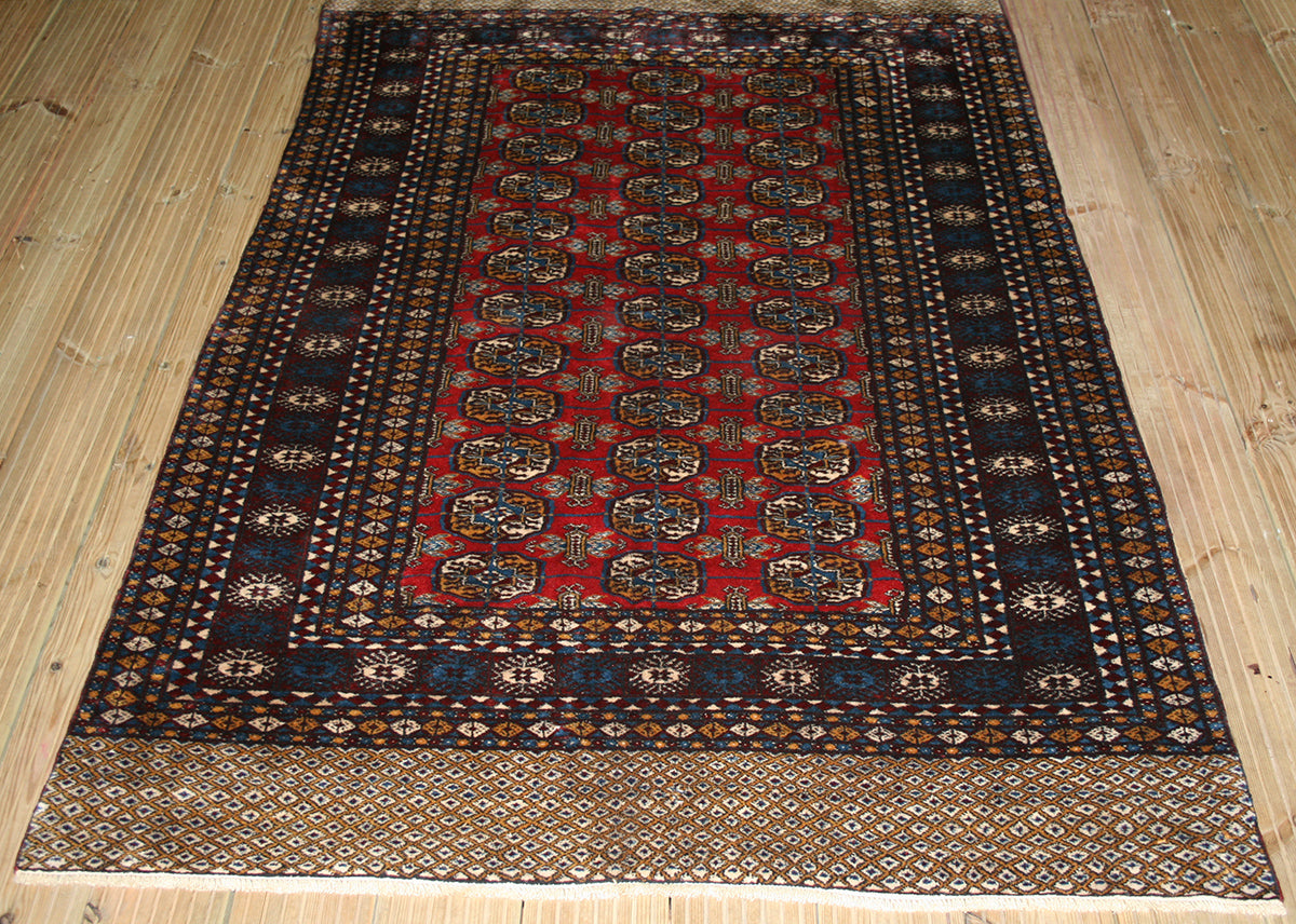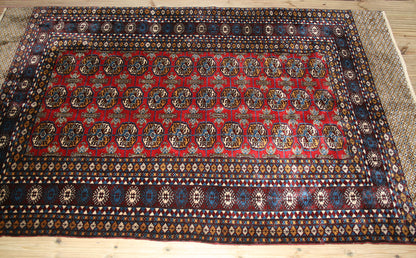 This hand-knotted Afghan Yamout rug channels the bold geometry and tribal heritage of Turkmen weaving. Its repeat medallion layout, anchored by Gul-inspired motifs, reflects the enduring symbolism of strength and lineage in tribal design.