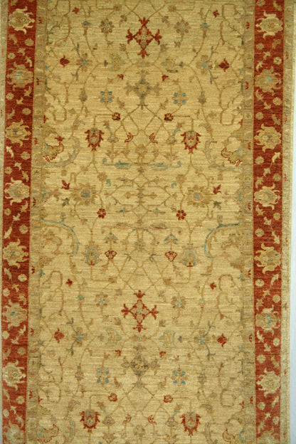This hand-knotted Afghan Ziegler rug reflects the balance of refinement and restraint that defines the Ziegler style. Its all-over floral design, featuring palmettes, rosettes, and stylised blossoms, unfolds in a softly symmetrical layout, creating a sense of quiet rhythm and continuity.