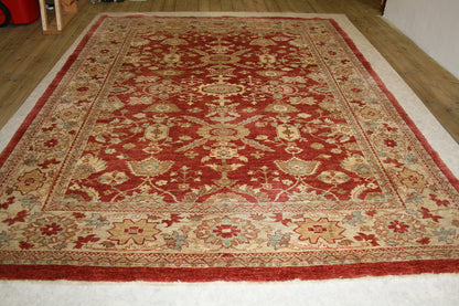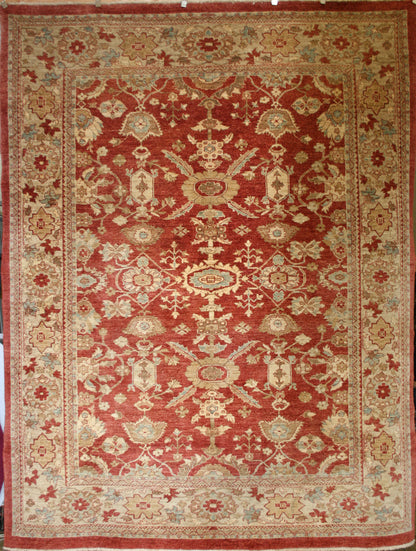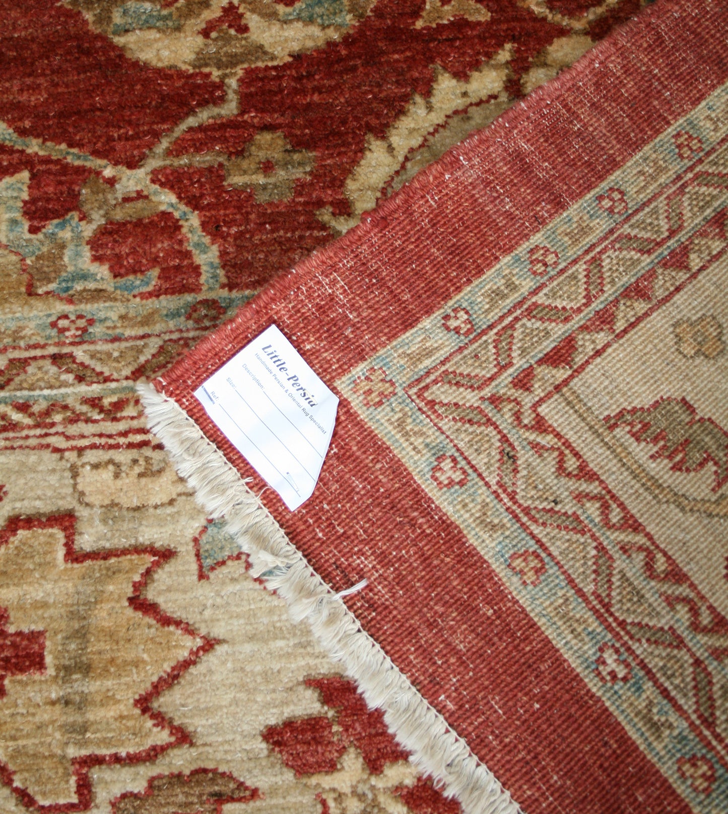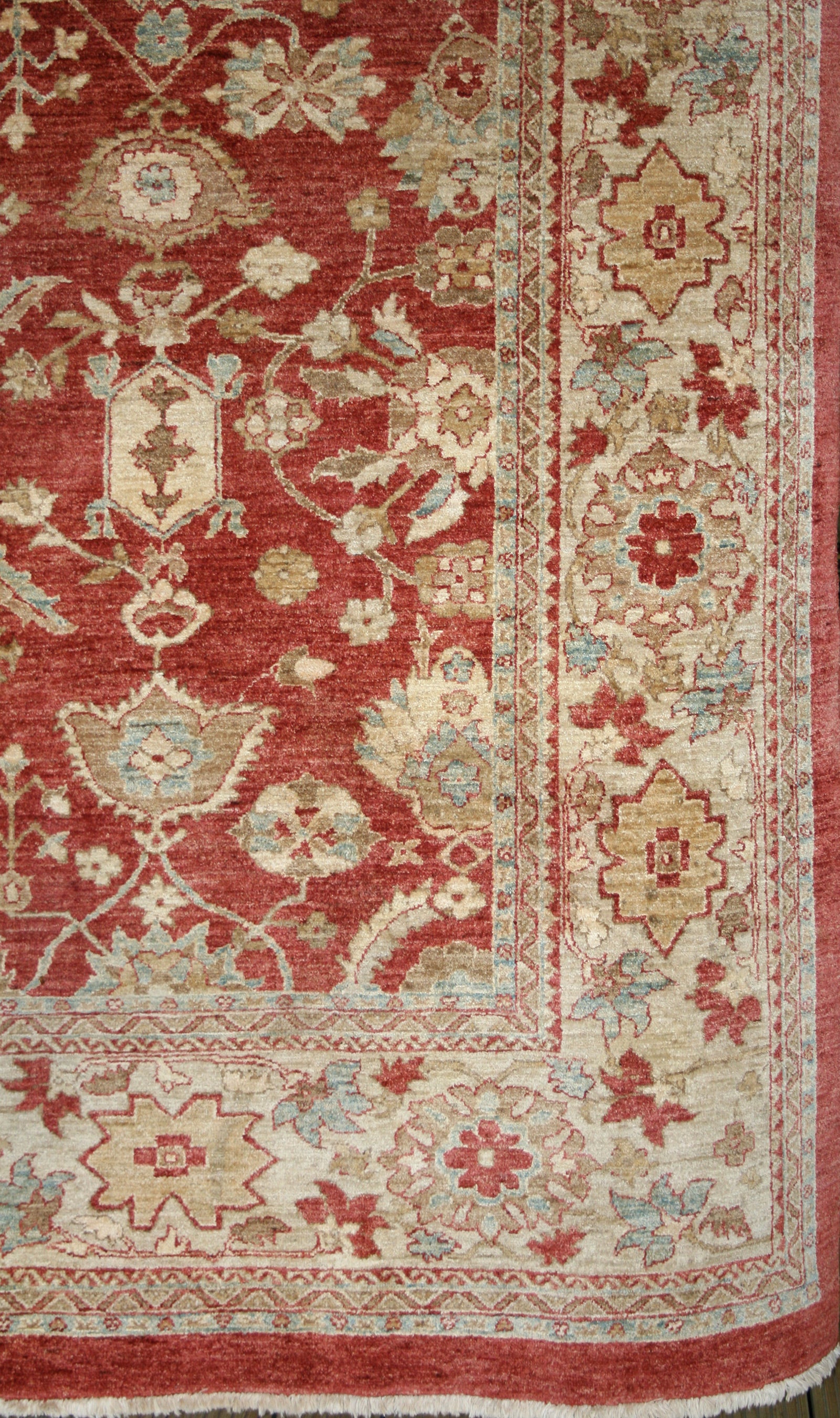 Hand-knotted in Afghanistan, this Ziegler rug embodies the refinement of Persian-inspired design, reimagined through Afghan craftsmanship. Its all-over floral arrangement—evoking Herati or Mina Khani traditions—features palmettes, rosettes, and stylised blossoms in a mirrored, flowing layout.