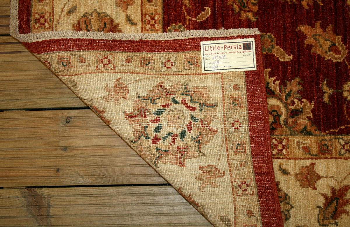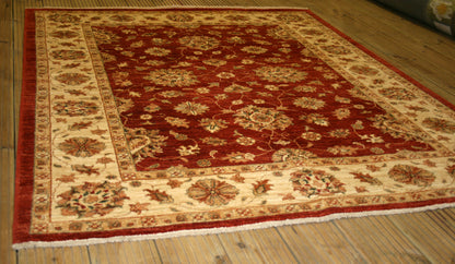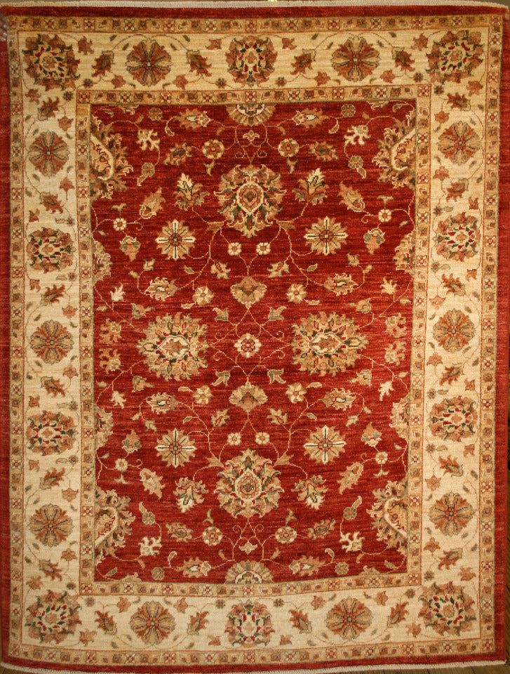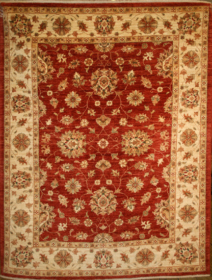 This hand-knotted Afghan Ziegler rug embodies the quiet elegance of traditional craftsmanship, offering a refined balance of form and colour. Its all-over floral design, featuring stylised palmettes and rosettes linked by flowing vines, creates a harmonious and symmetrical layout that feels both intricate and understated.