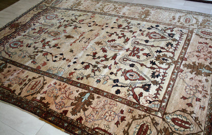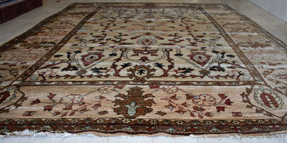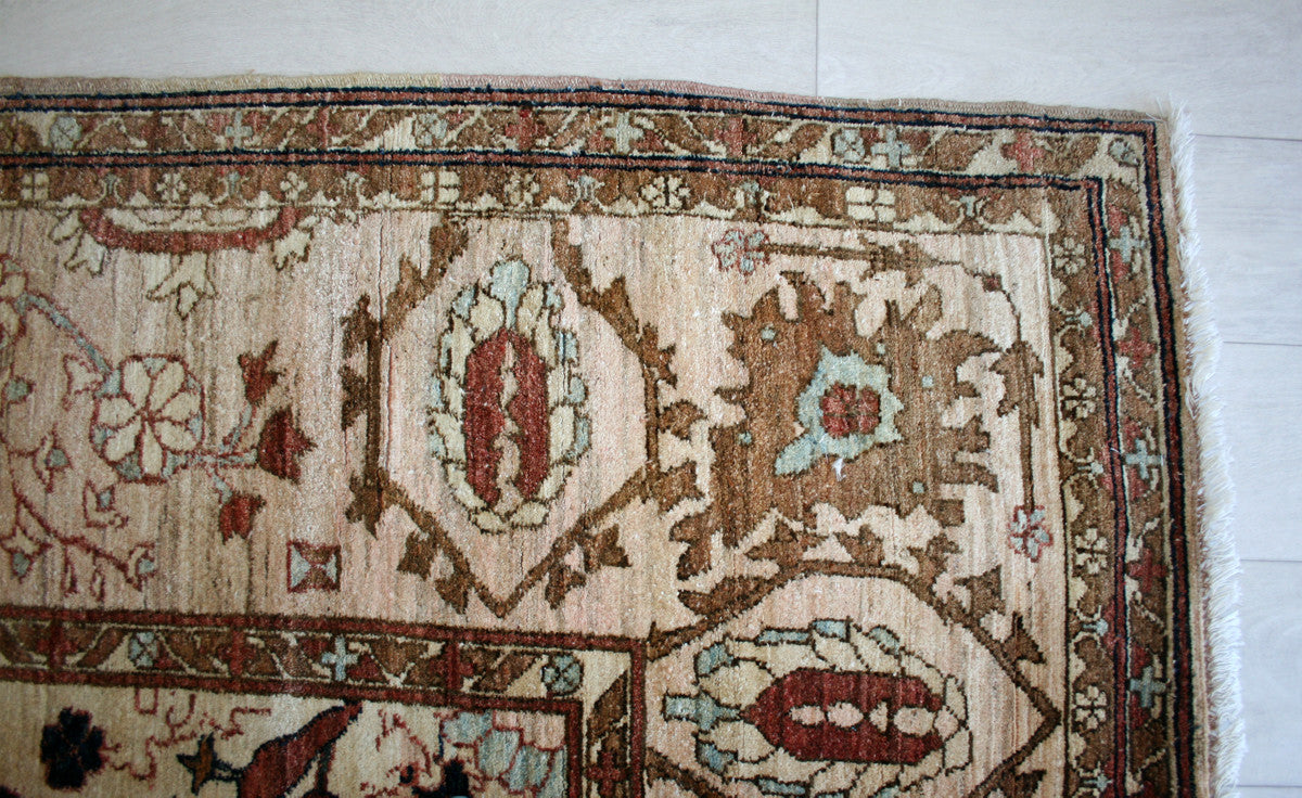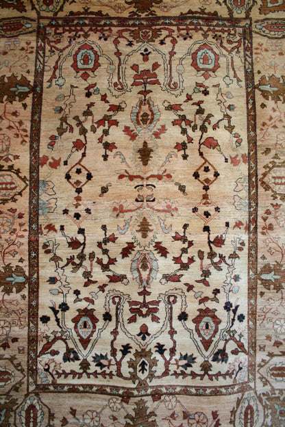 Hand-knotted in Afghanistan, this Ziegler rug embodies the refined elegance of classical Persian-inspired design, reimagined with a soft, earthy palette. Its all-over floral pattern—featuring palmettes, flowing vines, and stylised blossoms—creates a harmonious, symmetrical layout that feels both structured and organic.