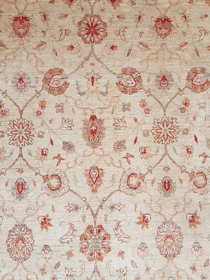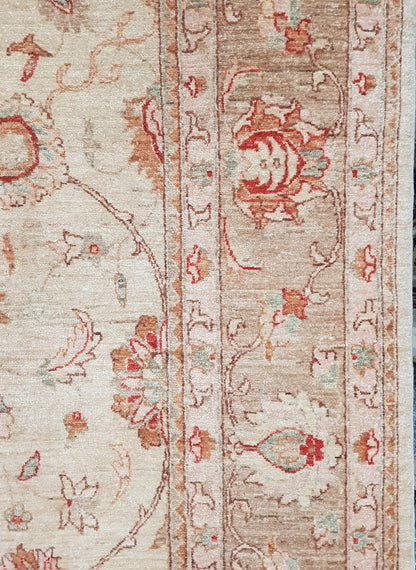 Hand-knotted in Afghanistan, this Ziegler rug embodies the refined subtlety of Persian-inspired design, reimagined through a modern, understated lens. Its all-over floral pattern, featuring palmettes, rosettes, and flowing vine-like structures, creates a harmonious symmetry that softens and enriches any space.