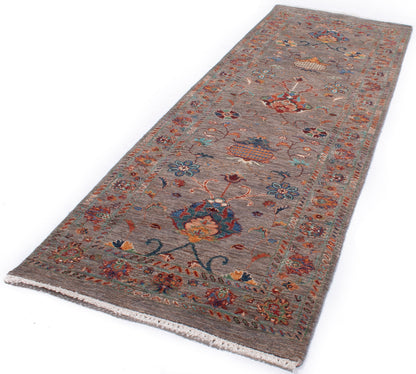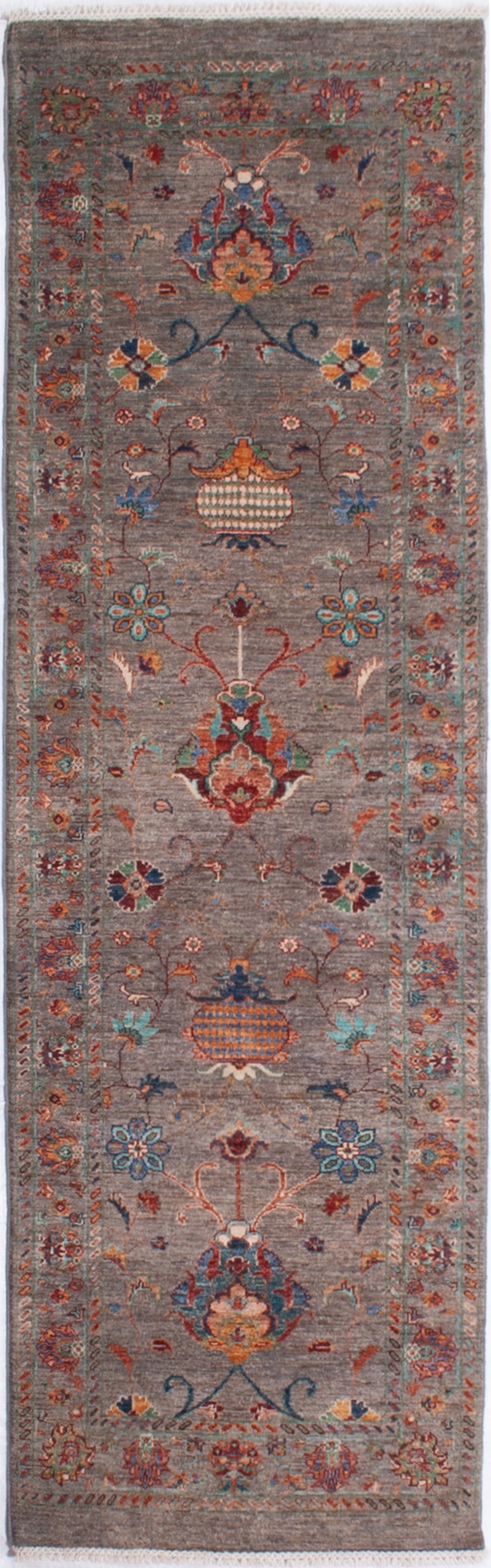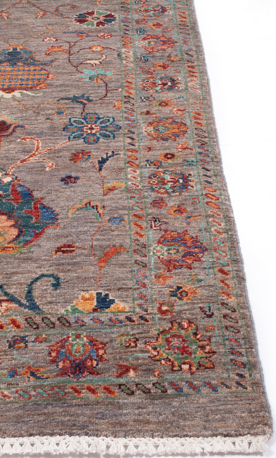This hand-knotted Afghan Ziegler runner brings a sense of balance and refinement to any hallway or transitional space. Its repeat medallion layout, mirrored along the central axis, blends floral grace with geometric structure, featuring palmettes, rosettes, and stylised vase forms intertwined with scrolling vines.