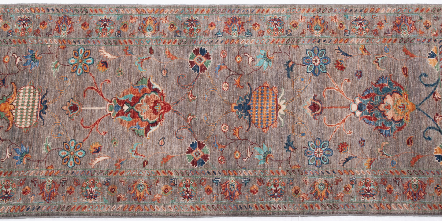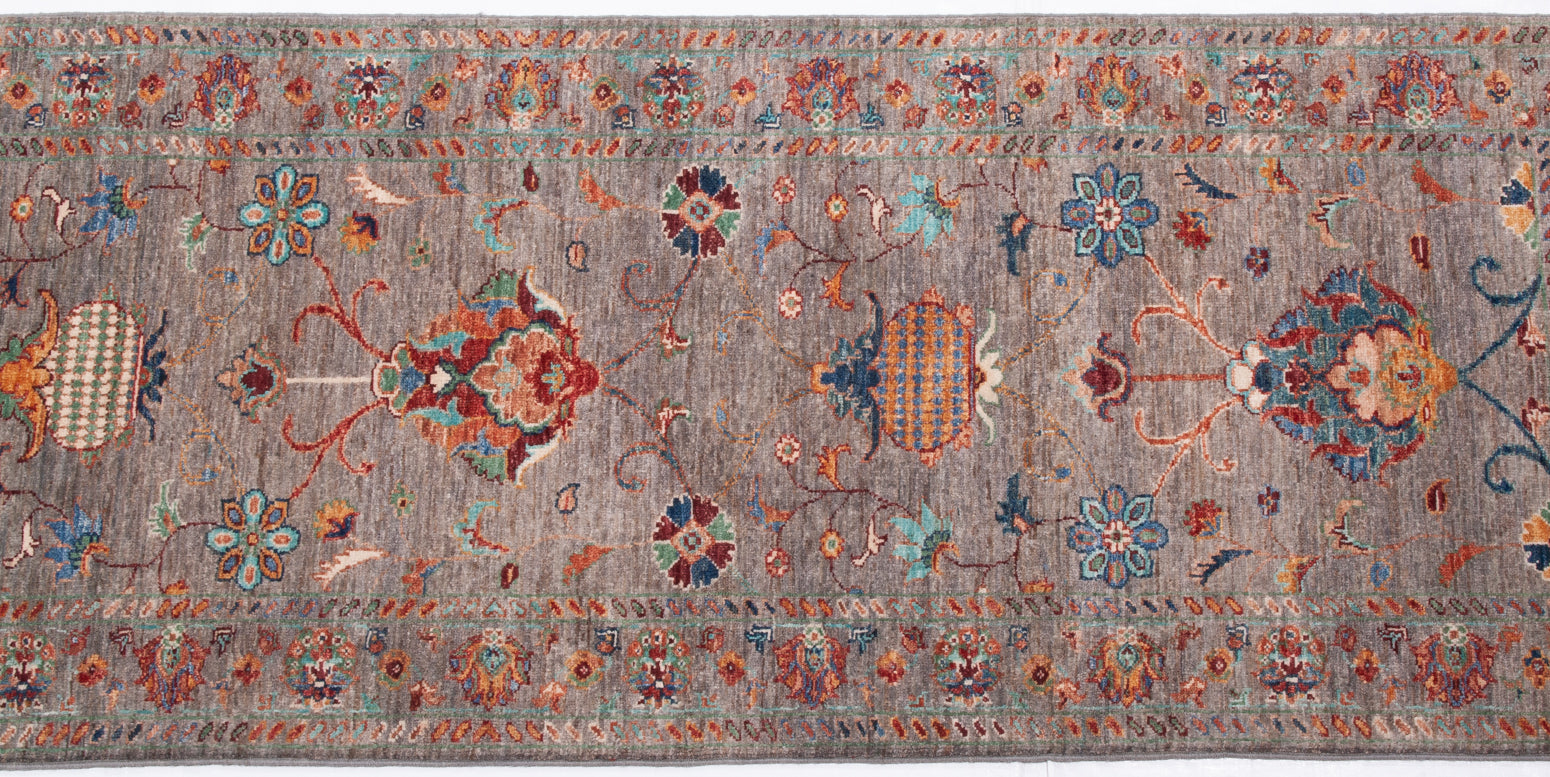 This Afghan Ziegler runner showcases the enduring appeal of balance and subtlety in design. Hand-knotted in Afghanistan, it reflects the Ziegler tradition of soft palettes and harmonious layouts, making it a versatile choice for both traditional and transitional interiors.