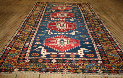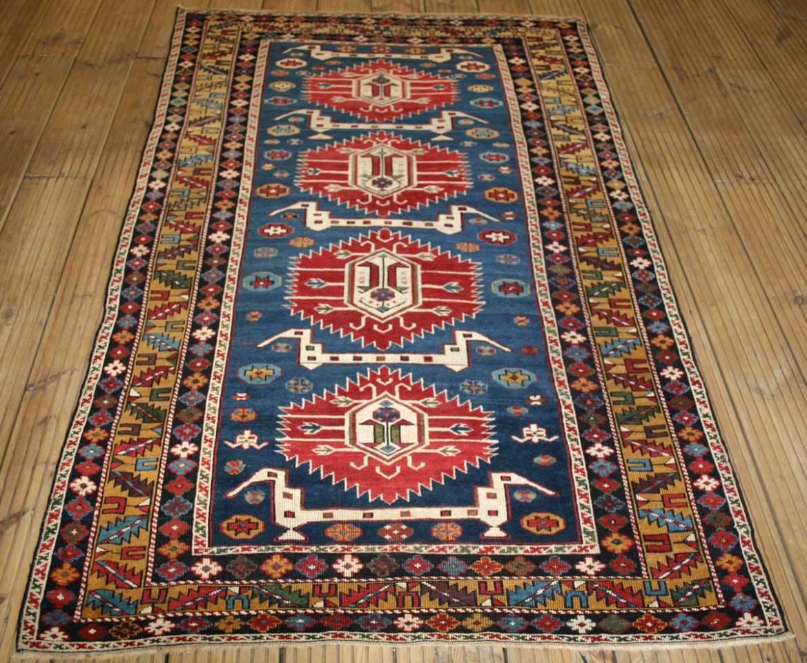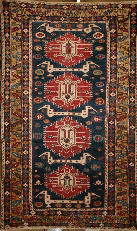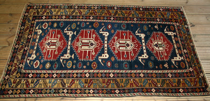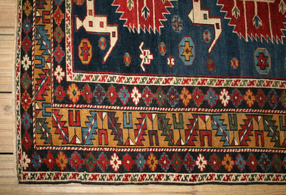Hand-knotted with a wool pile on a cotton foundation, this rug is both durable and deeply characterful. Its bold palette and tribal symmetry make it ideal for traditional homes, eclectic interiors, or collectors drawn to Caucasian weaving heritage.