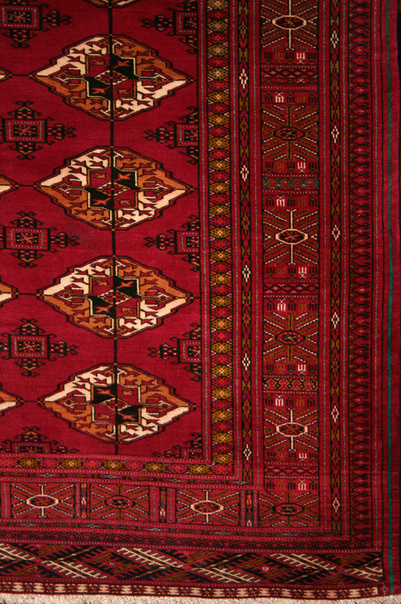 Turkmen rugs reflect the heritage of Central Asian tribal weaving, known for their distinctive gul motifs and carefully structured geometric layouts. This collection presents pieces that speak to the enduring traditions of Turkmen communities, with construction methods rooted in generations of skilled craftsmanship. We invite you to explore the depth of pattern and history within Turkmen rugs, selected for those who appreciate subtle artistry and time-honoured design.