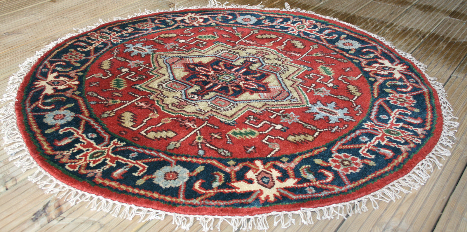 Discover how this Indian Heriz round rug can ground your home with heritage and style.