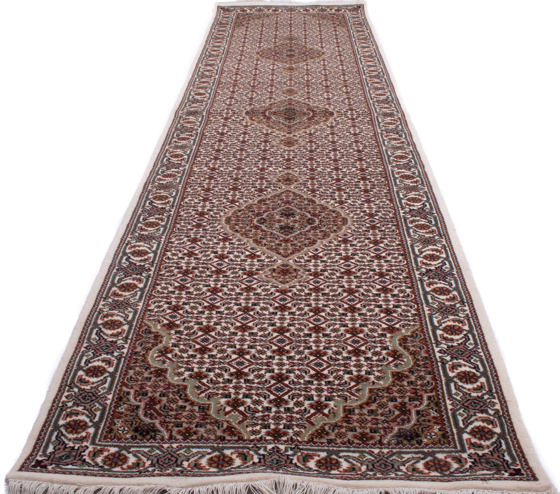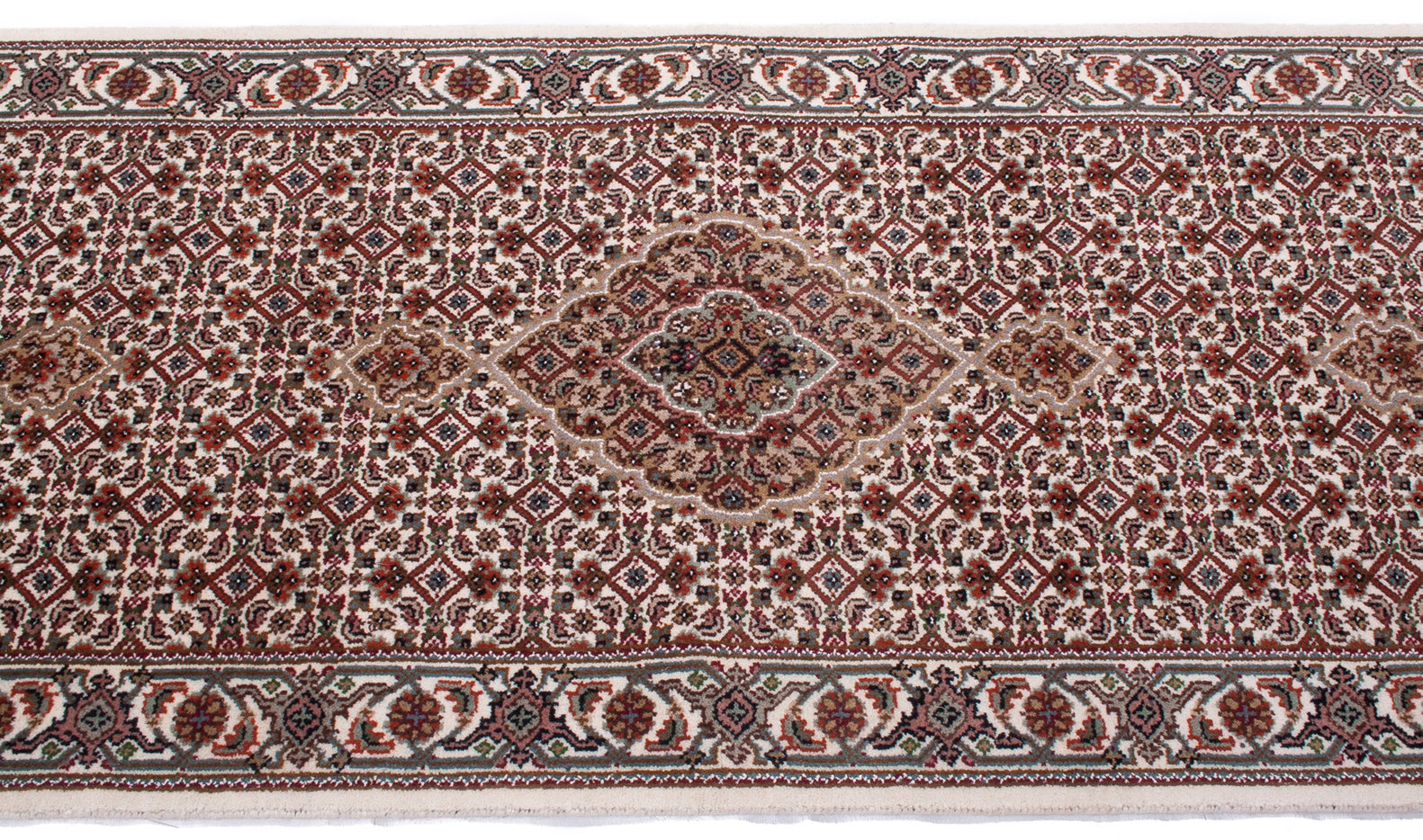 Bring enduring pattern and balance into your home with this Indian Tabriz runner. Enquire today to explore its timeless appeal.