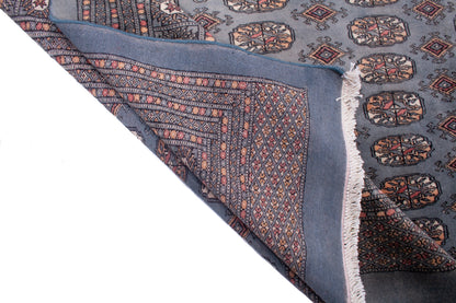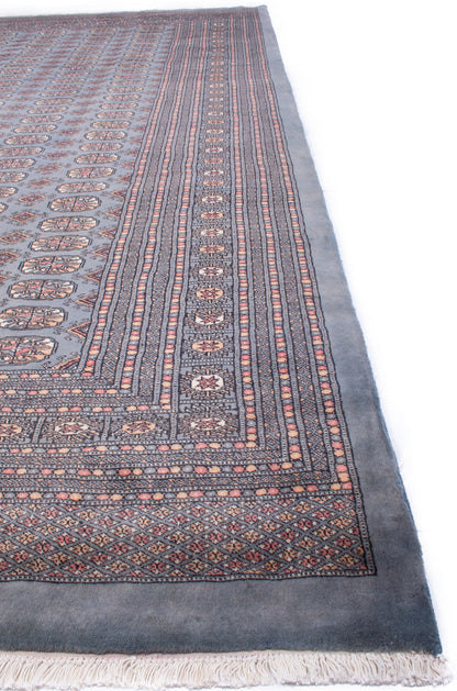 This hand-knotted Pak-Persian Bokhara rug from Pakistan captures the enduring elegance of tribal design. Its all-over Gul repeat—a grid of elongated, floral-infused medallions—reflects the symmetry and order of classical Turkic weaving traditions.