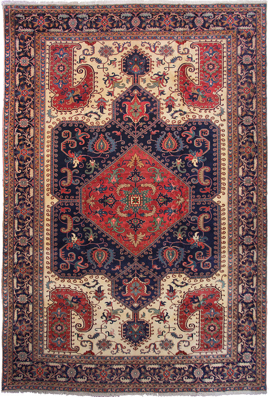 Heriz rugs are crafted in northwest Iran, an area known for its robust weaving traditions and distinctive geometric patterns. Typically featuring a bold central medallion, their construction reflects both durability and a confident sense of design. Explore this collection for pieces shaped by the heritage and skilled craftsmanship unique to the Heriz region.