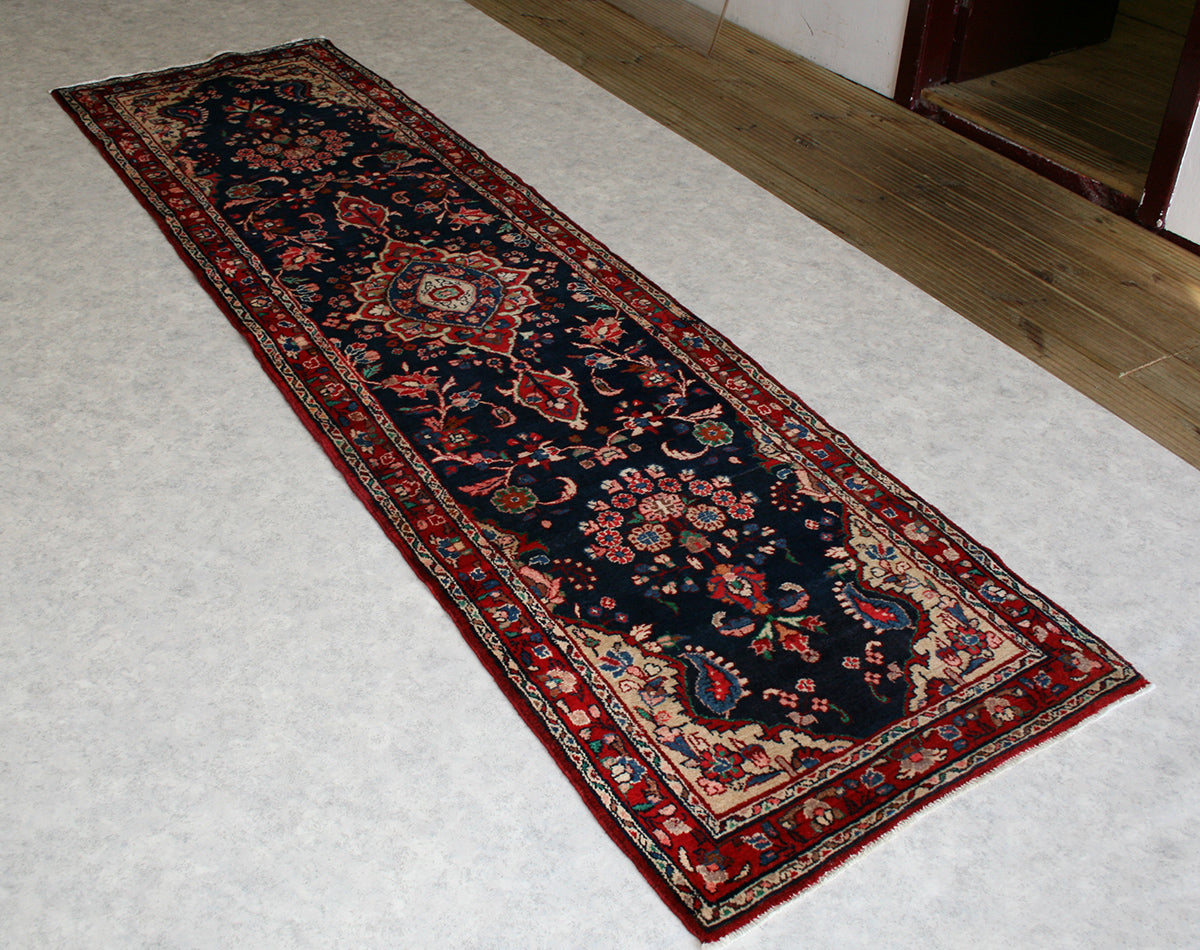 This runner rug is ideally suited for a hallway or entryway, where its elegant design can be fully appreciated and admired. Its rich colours and intricate patterns provide a sophisticated focal point that can complement both traditional and contemporary interiors. Embrace the cultural depth and timeless beauty of this Persian rug, inviting a piece of history into your home that can be cherished for generations to come.