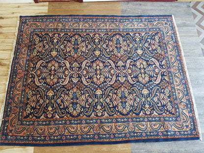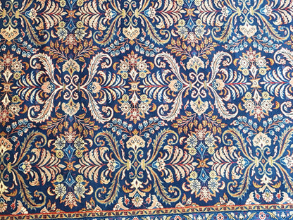 Hand-knotted in Mehraban, Iran, this Persian rug embodies the region’s tradition of weaving floral mastery into enduring form. Its all-over design of stylised palmettes and flowing, leaf-like motifs creates a symmetrical rhythm, mirrored along both axes to evoke balance and harmony.