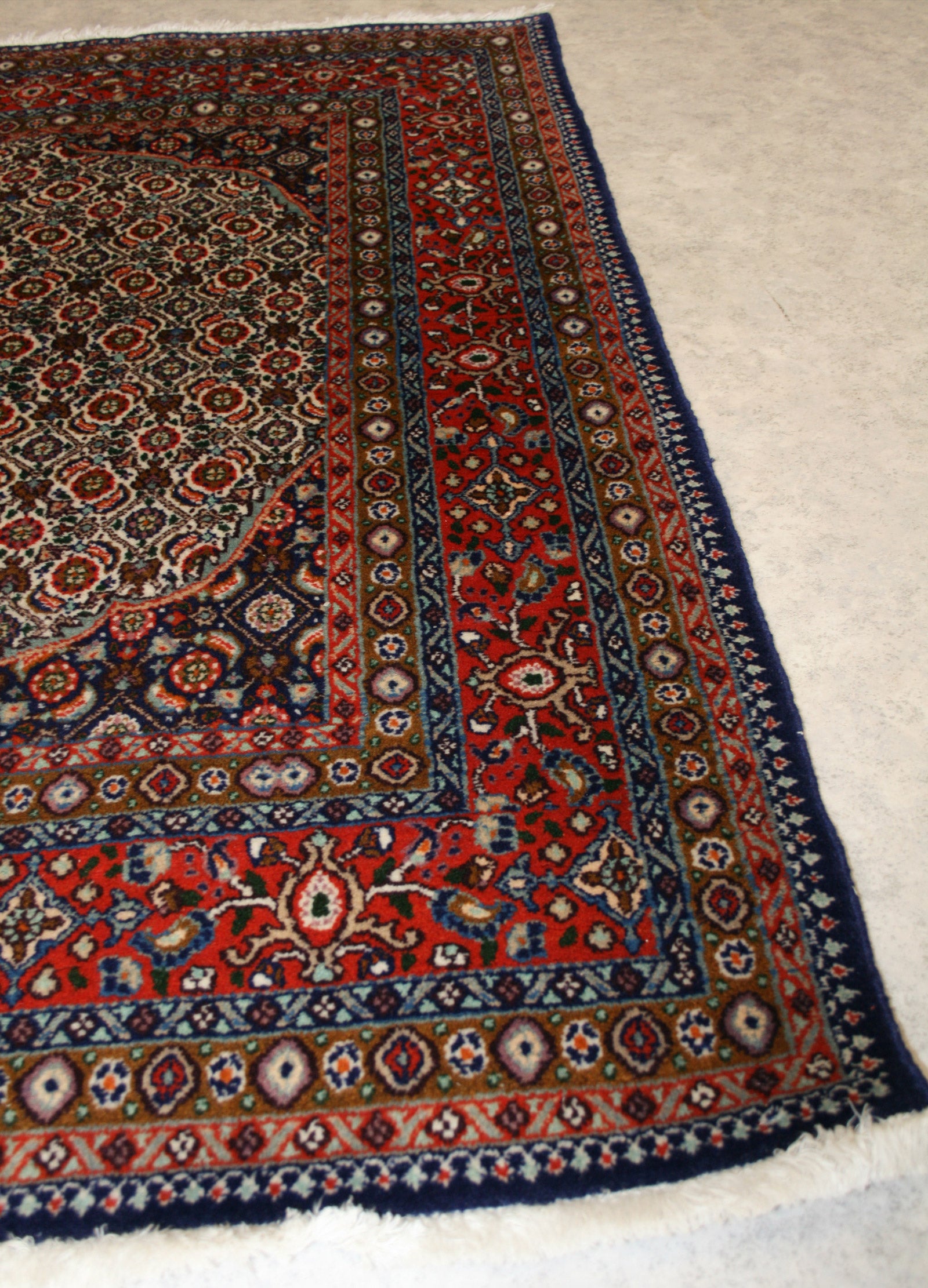 Moud Rugs are distinguished by their origins in eastern Iran and a careful balance of tradition and fine workmanship. Known for signature Herati and garden (kheshti) motifs, these pieces typically display refined designs with a sense of understated order. We invite you to explore the selection and appreciate the subtle craft and heritage woven into each rug.