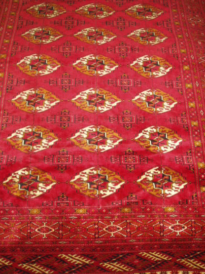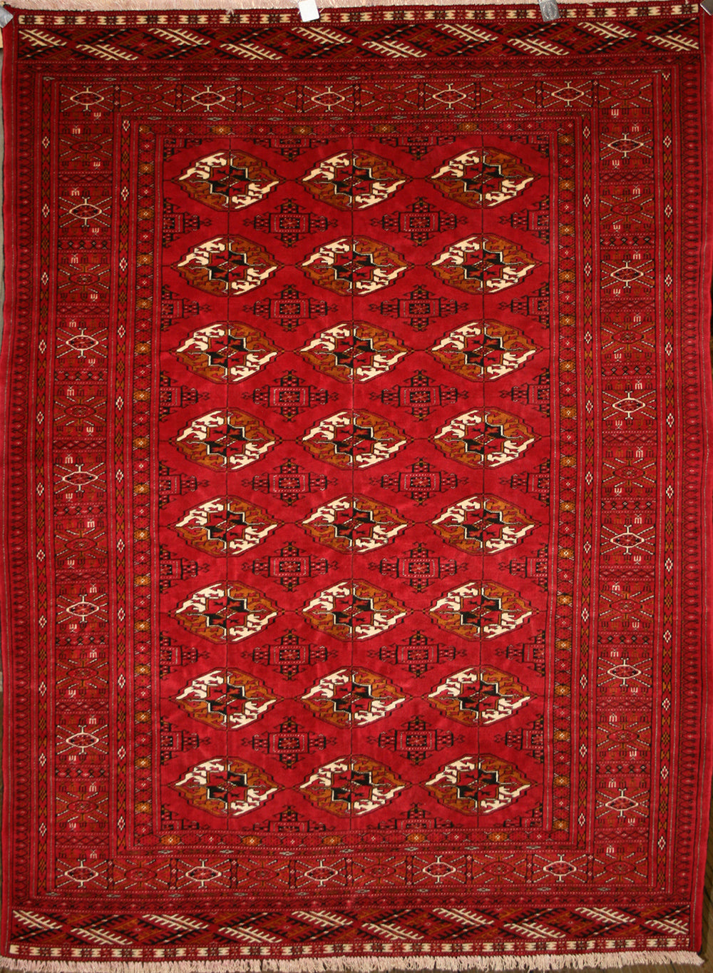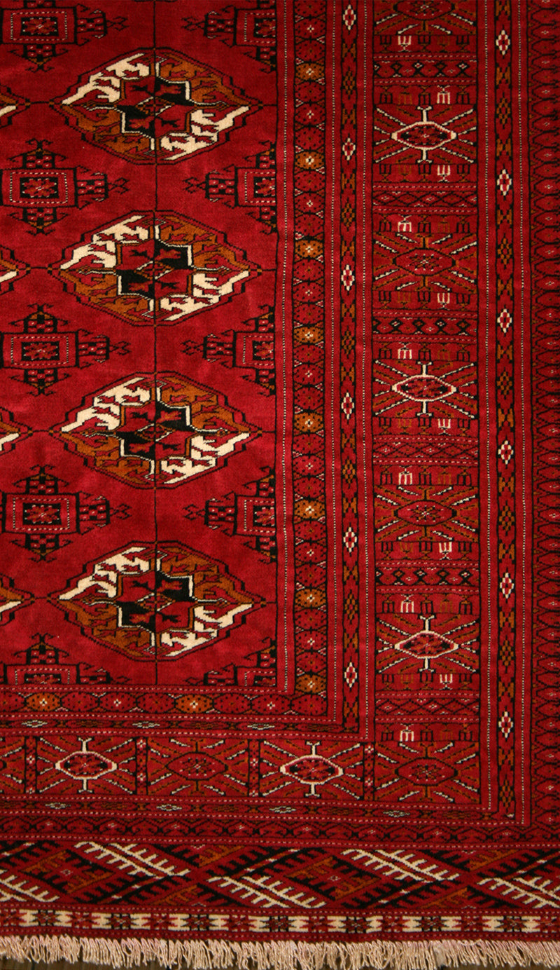Turkmen rugs reflect the heritage of Central Asian tribal weaving, known for their distinctive gul motifs and carefully structured geometric layouts. This collection presents pieces that speak to the enduring traditions of Turkmen communities, with construction methods rooted in generations of skilled craftsmanship. We invite you to explore the depth of pattern and history within Turkmen rugs, selected for those who appreciate subtle artistry and time-honoured design.