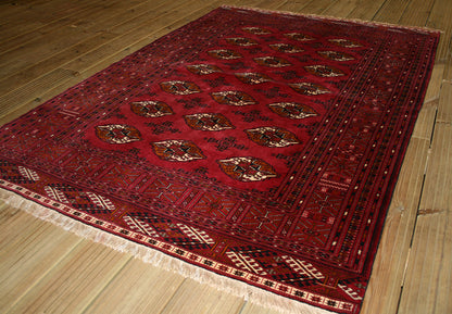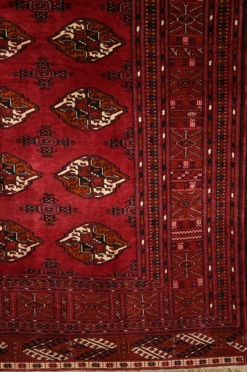 Turkmen rugs reflect the heritage of Central Asian tribal weaving, known for their distinctive gul motifs and carefully structured geometric layouts. This collection presents pieces that speak to the enduring traditions of Turkmen communities, with construction methods rooted in generations of skilled craftsmanship. We invite you to explore the depth of pattern and history within Turkmen rugs, selected for those who appreciate subtle artistry and time-honoured design.