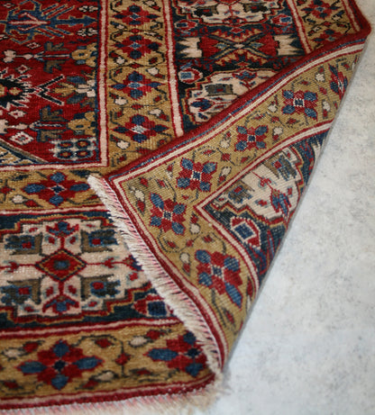 Hand-knotted from wool on a wool foundation, this rug is not just a decorative piece but a cultural artefact, rooted in generations of craftsmanship. Its warm palette and bold pattern make it ideal for traditional and character-rich interiors, where it can serve as a captivating focal point.