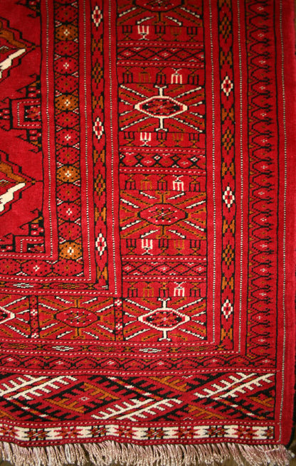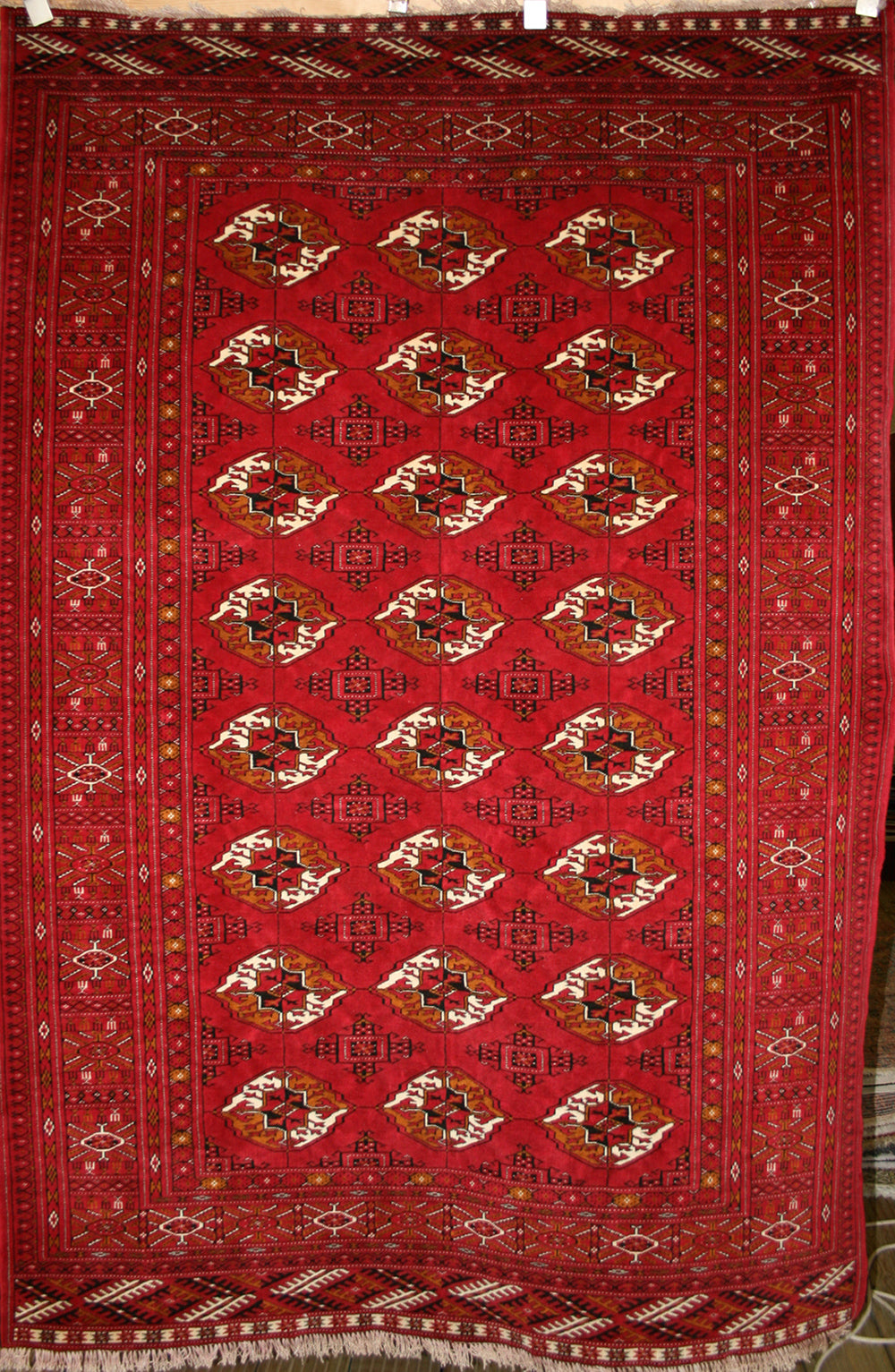 Turkmen rugs reflect the heritage of Central Asian tribal weaving, known for their distinctive gul motifs and carefully structured geometric layouts. This collection presents pieces that speak to the enduring traditions of Turkmen communities, with construction methods rooted in generations of skilled craftsmanship. We invite you to explore the depth of pattern and history within Turkmen rugs, selected for those who appreciate subtle artistry and time-honoured design.